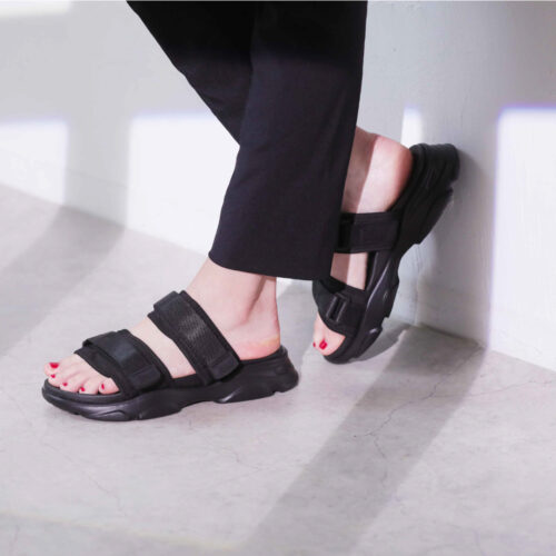 履いて歩くだけ、スリムサンダル。いつもの靴をコアアクティブサンダルに変えて歩くだけで、気軽に体幹ダイエット。特許取得の独自インソールをバージョンアップ。美姿勢に導き、筋力や歩行をキレイにサポートします。さらに歩きやすいトウアップソールやストレスフリー設計のソフトアッパーを採用。快適な歩みをアシストします。運動する時間がとれない。日常でダイエットにしたい。という方におすすめ。